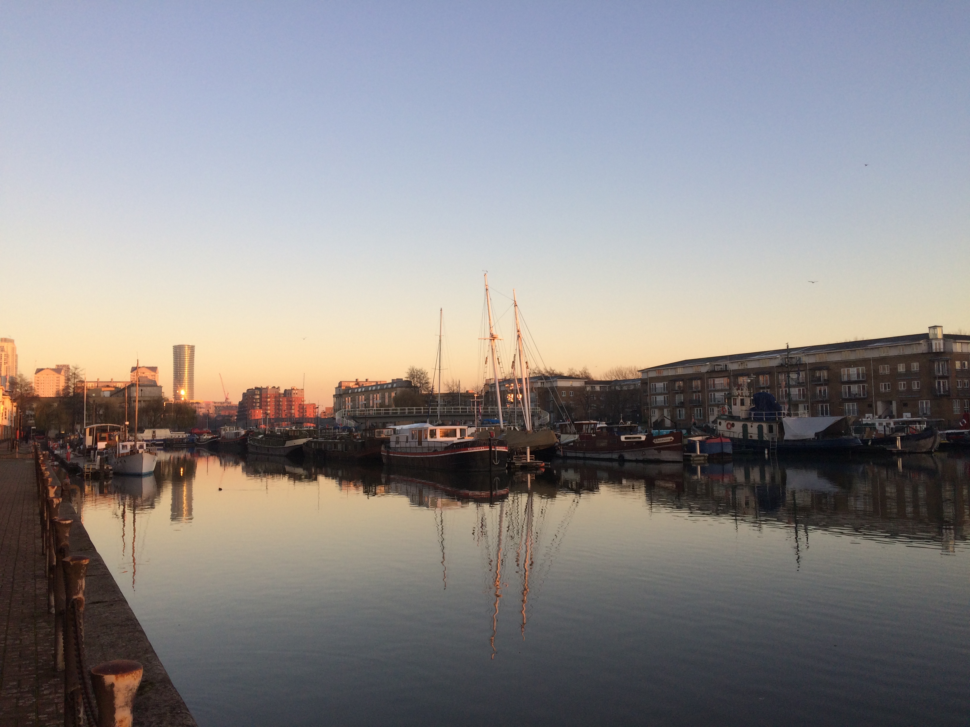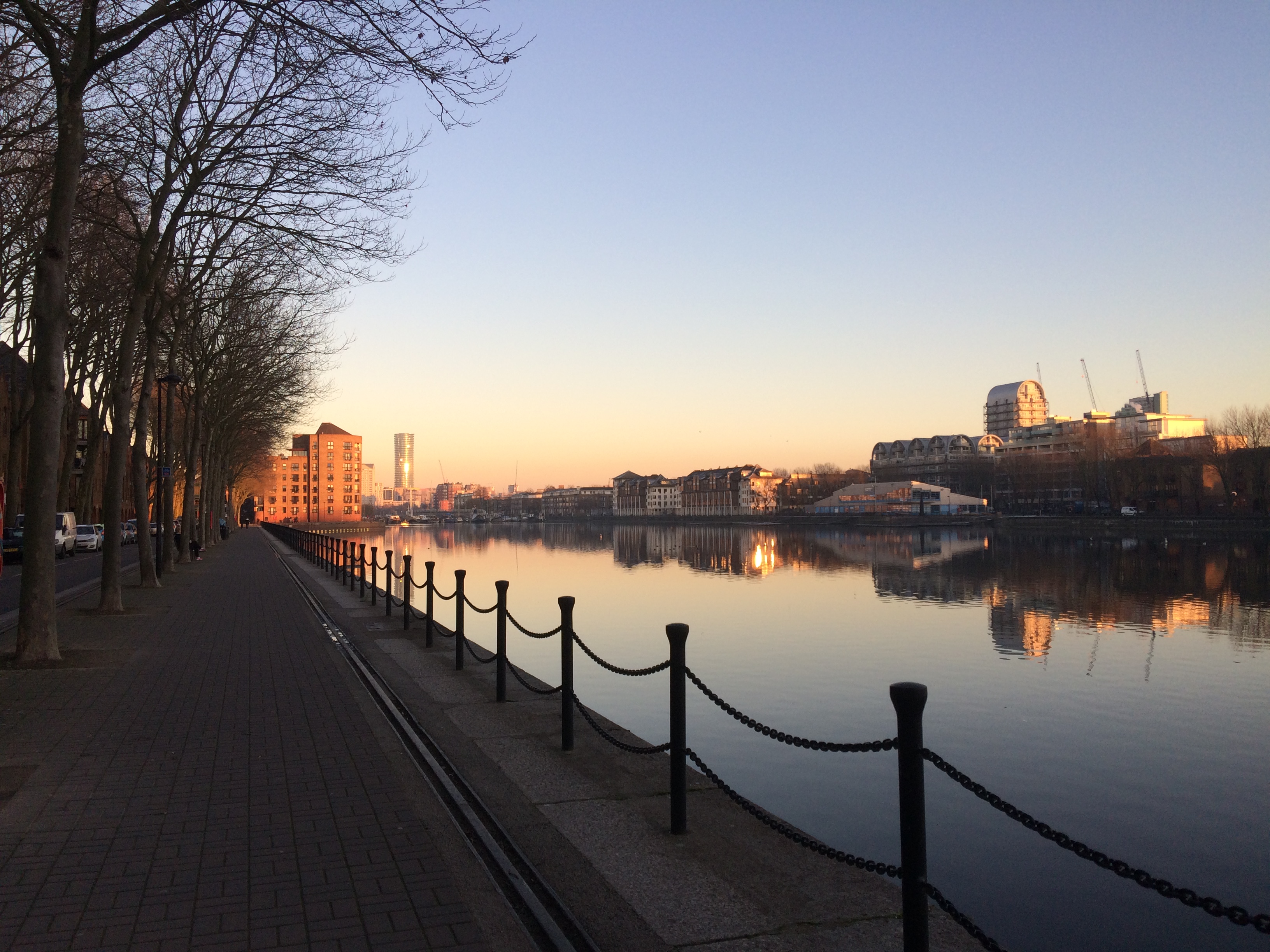 Greenland Dock is London’s oldest surviving dock from the now-lost Surrey Commercial Docks Company (closed in 1969). The buildings and warehouses that once lined its sides were used to boil whale blubber to make oil. Whales were brought here by whaling ships chartered from Greenland, hence the dock’s name. One can only imagine what that must have smelled like! Now, the sites are home to new-build riverside homes with sunset views.