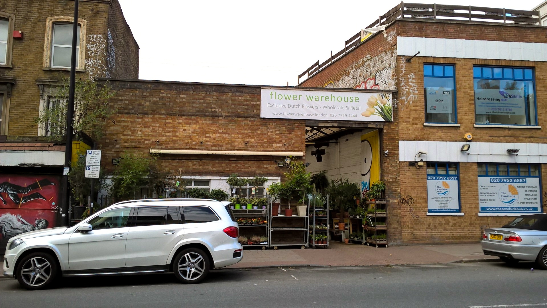 The Flower Warehouse can be found at 517A Cambridge Heath Road, London E2 9BU. Their website is here… and the bus stops right outside!