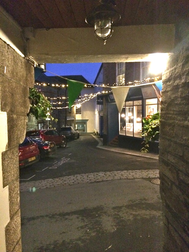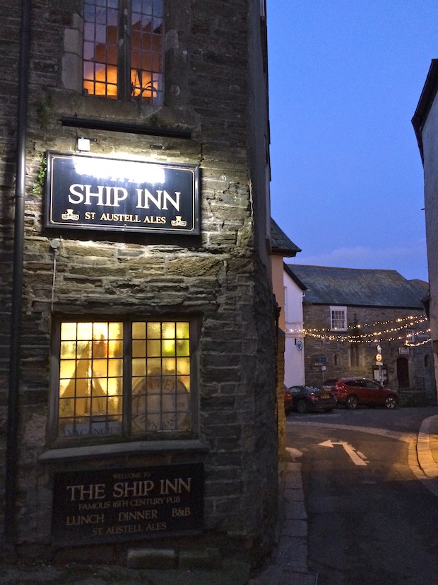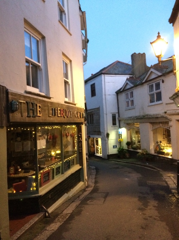 This is Readymoney Cove with some Christmas canoeists just paddling out. You are now very nearly at Fowey and have the picturesque walk through the winding lanes of the ancient town to look forward to with views of Polruan’s twinkling lights opposite. Polruan is Fowey’s neighbouring town that can be reached by ferry every 15 minutes from Fowey’s harbour.