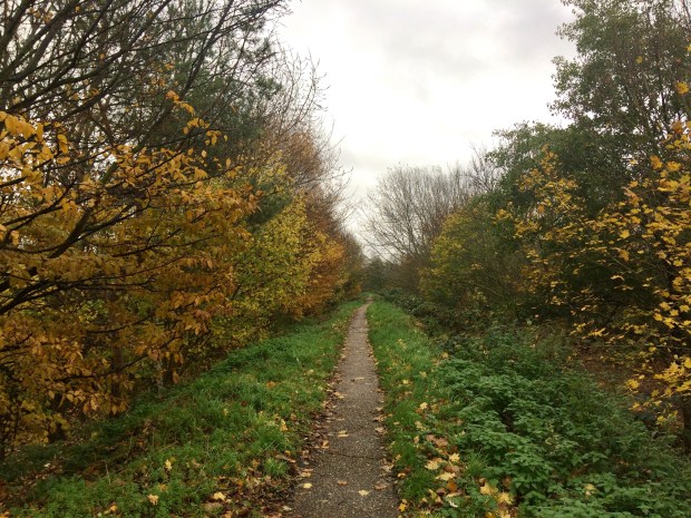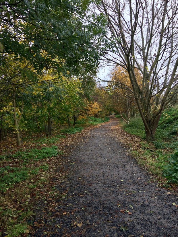 You can reach the farm by travelling to Mudchute on the DLR and then walking through the park. You’ll come across these long, strangely straight tracks ~ one raised as though on a disused railway line and the other running along beside it.