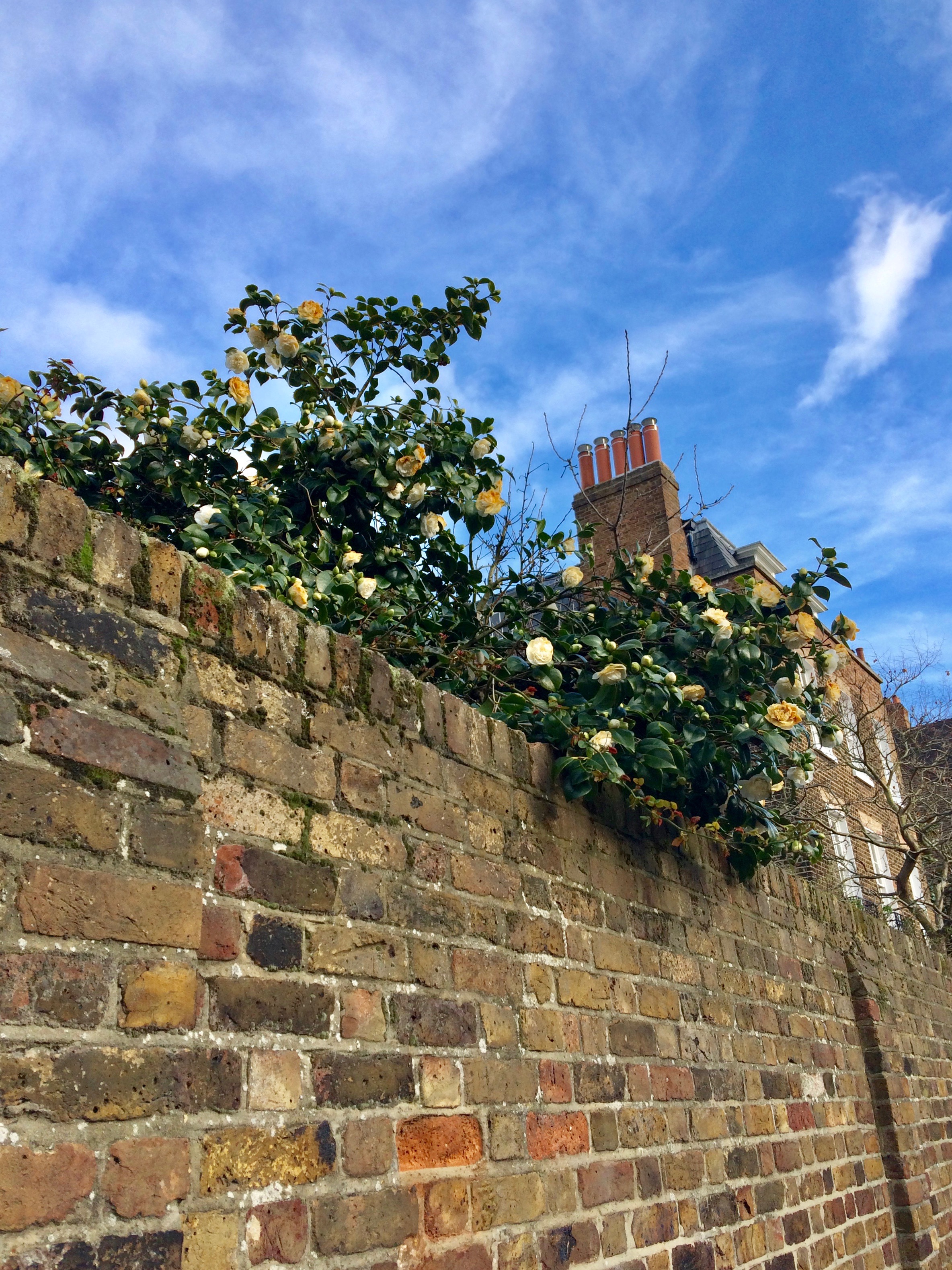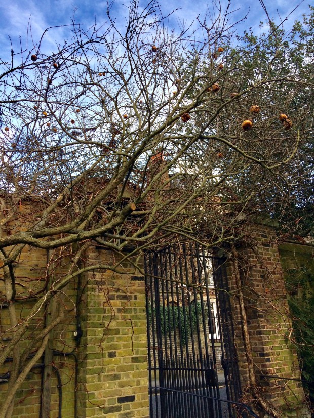 As we wander through the iron gate, an apple tree looms above, offering its crops towards the sky. It’s so quiet here, and I’m reminded that Chelsea was once a village. What a haven this once must have been ~ it still is now, especially in February when most think there isn’t much to seeโฆ Gulp in the fresh, crisp air and keep walking.