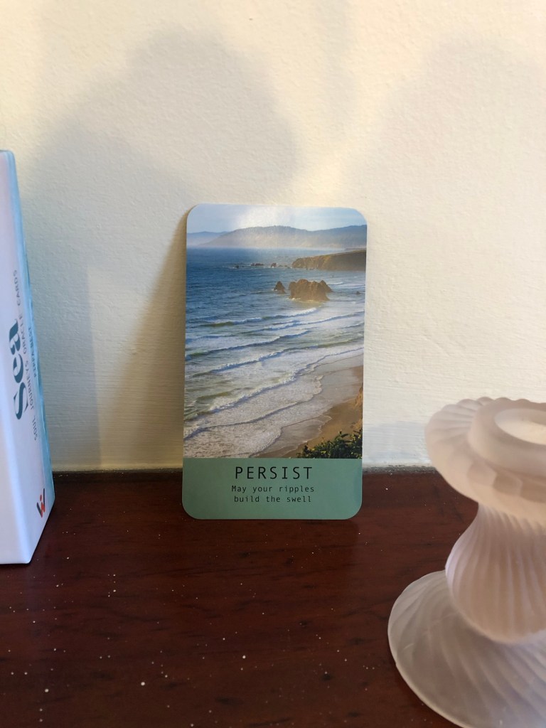 Iโd taken some battering, Iโd taken some pressure and drilling. And this was what remained. Excited as a child for my birthday, waking up alone, drawing an oracle card that said: ‘Persist ~ May Your Ripples Build The Swell’. And persist I would all the way through that long year.