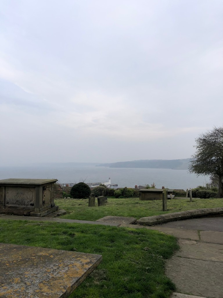 And this panoramic, heavenly view is the churchyard of St Mary’s where the famous 19th century novelist Anne Brontรซ is buried, who was visiting from her childhood home of Haworth in West Yorkshire and, selflessly to spare her family the expense of transporting her body, requested to be laid to rest here in Scarborough, a place she was deeply fond of, having worked as a governess for a local family ~ the town being forever immortalised in her writing.