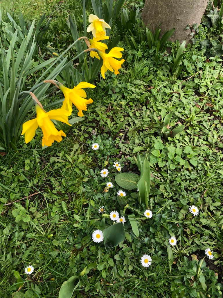 This year, I found myself reluctant to come out of the cocoon of rest and rebirth that Winter had held for me. I didnโt want to move away from cosy jumpers, hot water bottles, bare black branches on the trees and the catch of cold in my throat when I went out for a walk. It felt like my body was saying, “It will always be like this, donโt take me away from this.” So I found it really difficult to change the background on my phone to the picture of the yellow, joyous daffodils and daisies on the road beside my motherโs cottage and away from the cherry-red hawthorn berries I had taken in December. The green and yellow were suddenly jarring, even though we had passed the equinox and the first day of Spring. But I changed it because I knew I had to move forward. There was a whole year left to live, and Spring and Summer would come and warmer weather, whether I had completed my to-do list or not. Sometimes we just need a little push, and there are few things more gentle than the first stirrings of Spring in English soil. Daffodils and snowdrops, crocuses, primroses, hyacinths, bluebells ~ soft and vulnerable and determined, and bursting with new life, telling us it is time to move on…
