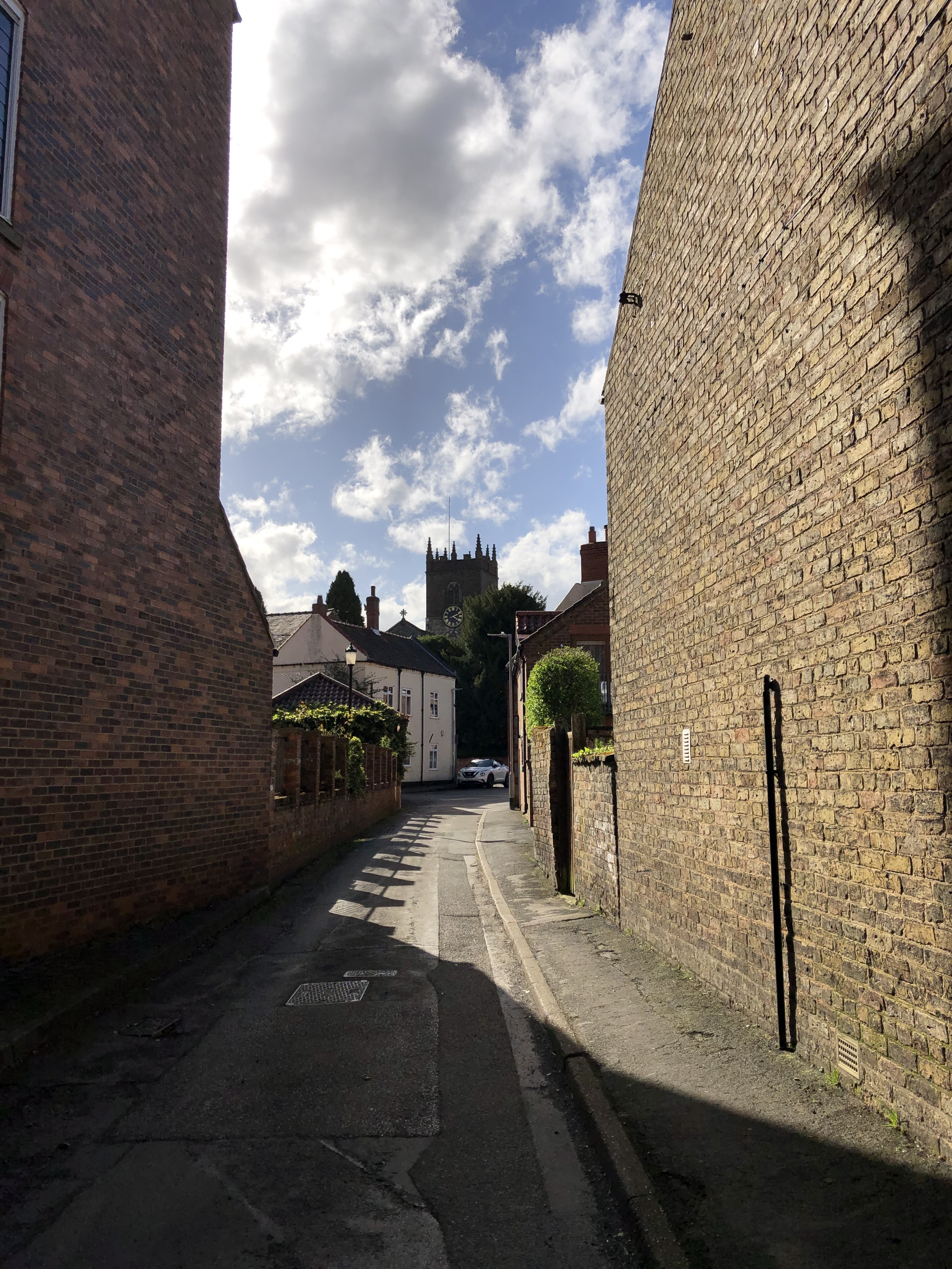 Ordered, richly carved and well-tended, All Saints is situated on a slight rise in the land and backs onto the most idyllic hidden country lanes. On a sunny day in spring, she welcomed us with sunlight pouring through the colourful stained glass windows, and we felt grateful and happy we got to meet her in such a mood. The interior was dappled and greened by the trees’ leaves outside which waved in the breeze, throwing shadows and colour onto the walls. She feels very much a part of the countryside around her, hugged by greenery. If you visit here yourself, I recommend following the road called The Archway around the back of the church, leading onto St Helen’s Square for a short jaunt past some quaint Georgian townhouses and a picturesque view of All Saints from behind.