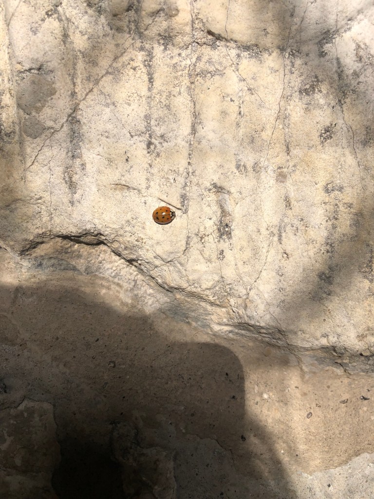 Inside St James at Nunburnholme is a great upright stone with four sides. Its energy is so powerful that I didn’t feel right taking a picture of its strange, disquieting carvings, etched in a kind of mural around its cuboid flanks. Instead, I found this spotted ladybird bathing in the weak sunlight thrown through the window the stone is placed beneath. Ladybirds always appear when something important in my life comes to pass. The National Churches Trust tells us, “With its ancient stone cross carved by Anglo-Saxon and Viking sculptors, its Norman arch and medieval font and stained glass windows, the church spans a millennium; cross the threshold and feel yourself stepping back in time”. This explained my sense of strong emotional connection to this site. Encapsulated within its walls were centuries of history and the successive stamps of my ancestors’ pious hands. Writing this now with the depth of stories the stone offers tantalisingly close, I can’t help thinking it would make an incredible topic for a dissertation or thesis if any of my readers are looking for one.