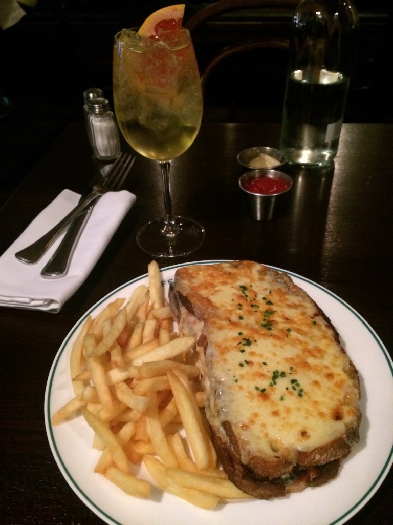 Patrons lounged above coffees on the banquette seating inside, quietly absorbing the distinct 19th century vibe of this bistro-cum-bar in the heart of Soho, which serves up the classics ~ steak-frites and live jazz ~ at lunchtime.